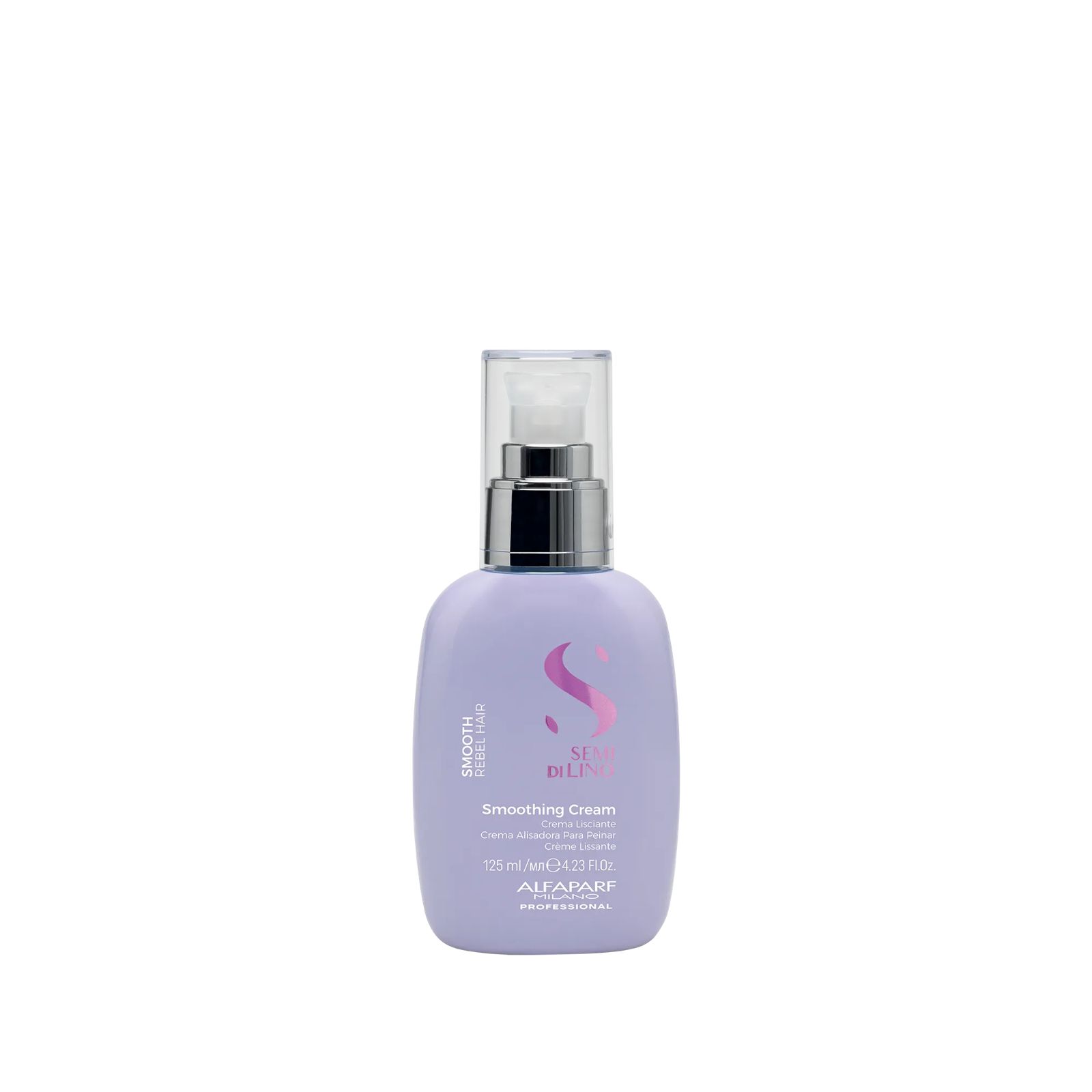 Precio Exclusivo En Pagina Web. La linea SMOOTH SMOTHING semi de lino para comprobar el cabello indisciplinado  y difĂcil de manejar, hidrata el cabello, alinea las fibras y combate el efecto crespo, recuperando su belleza natural, para cabellos rebeldes, controla, hidrata y alisa. SMOTHING CREAM . Crema alisadora para cabellos rebeldes, facilita el cepillado protegiendo el cabello del calor y la humedad, para un alisado sin efecto crespo de larga duraciĂłn. Cantidad 125 ML. Linea profesional. Origen ITALIA🇮🇹