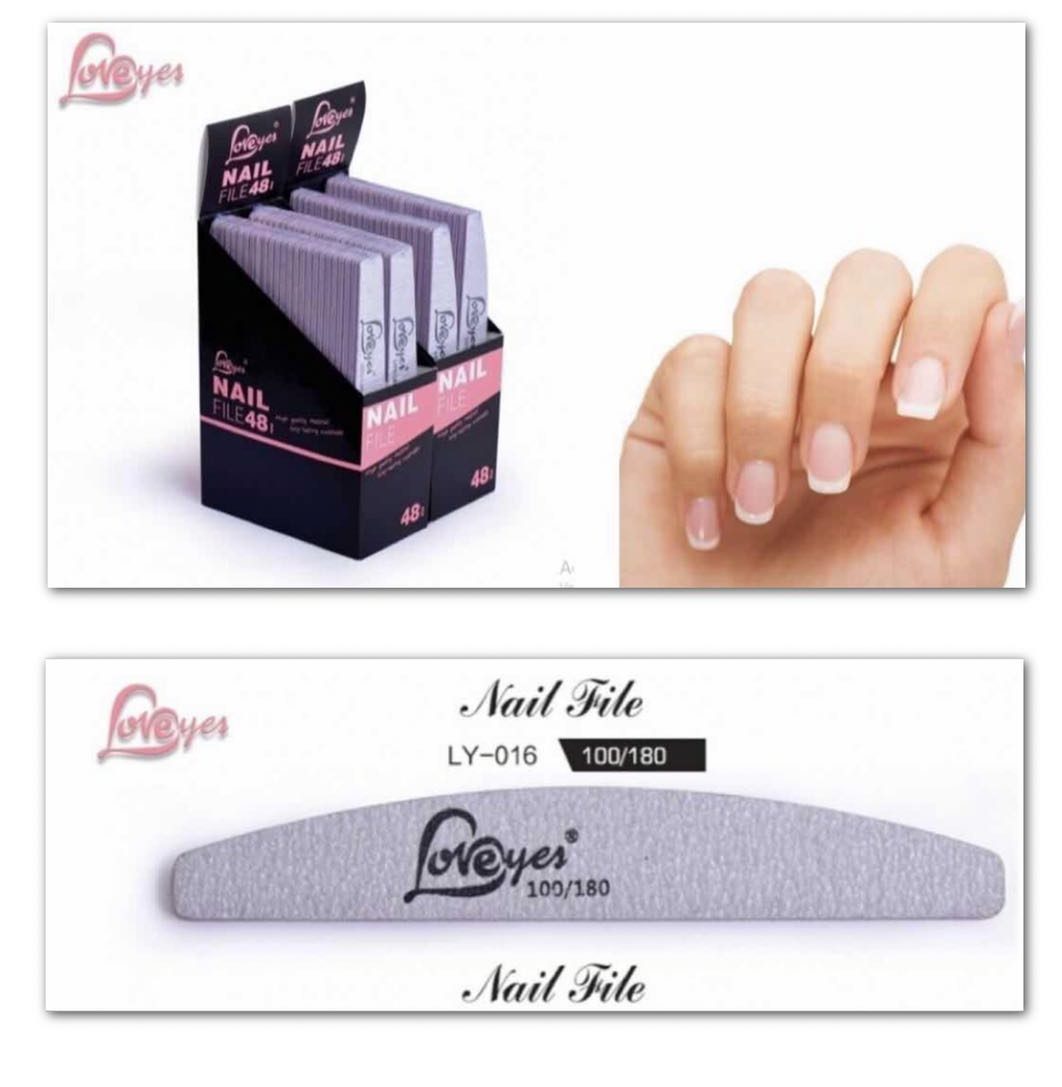 LIMA 100/180 LOVEYES Este tipo de lima normalmente tiene un grano de 100/180 ideal para pulir y dar terminado al acrĂlico o gel. Algo muy importante a tomar en cuenta, independientemente del grano de la lima, es la presiĂłn que ejerces sobre la uña en el momento del limado, ya que aunque utilices una lima muy fina sobre la uña natural, pero haces mucha presiĂłn o limas demasiado, puedes ocasionar un daño irreparable en la uña de tu clienta. Recuerda que la uña está conformada por 100 capas, de las cuales durante la preparaciĂłn solo debes de retirar de 3…
