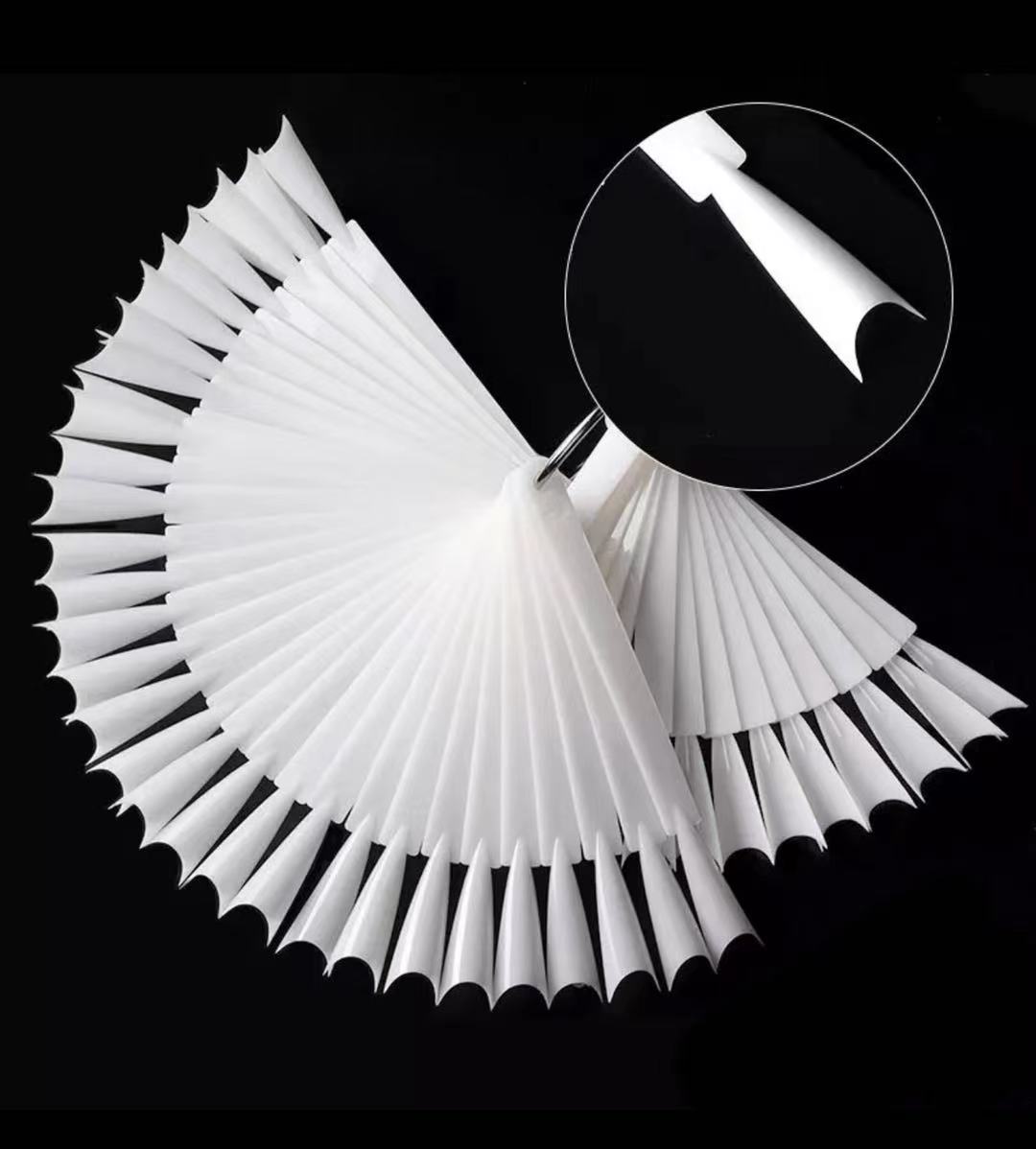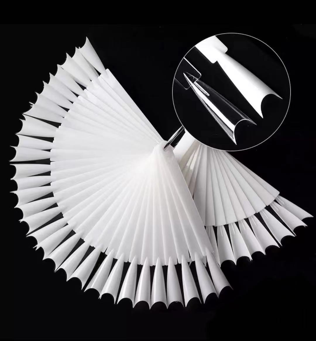 muestrario perfecto para tener los colores y diseños listos para tus clientas también ideal para realizar practica 50 pcs. material: plástico. medidas: 12 cm. color disponible: transparente, natural. si optas por algún color en especial indÃcalo en observaciones al final del pedido y este será enviado siempre y cuando quede stock.