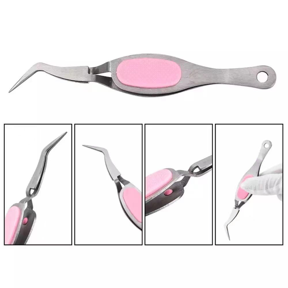 Pinza diseñada para crear la curva natural en C durante el secado de las uñas acrÃlicas o gel esculpidas con molde. fácil de usar gracias a su punta extra fina nos ayudara también a tomar esas decoraciones pequeñas que en la mayorÃa de los casos cuesta tanto. caracterÃsticas: color: plomo con goma celeste y rosada medidas: 13 x 2 cm material: acero inoxidable y goma