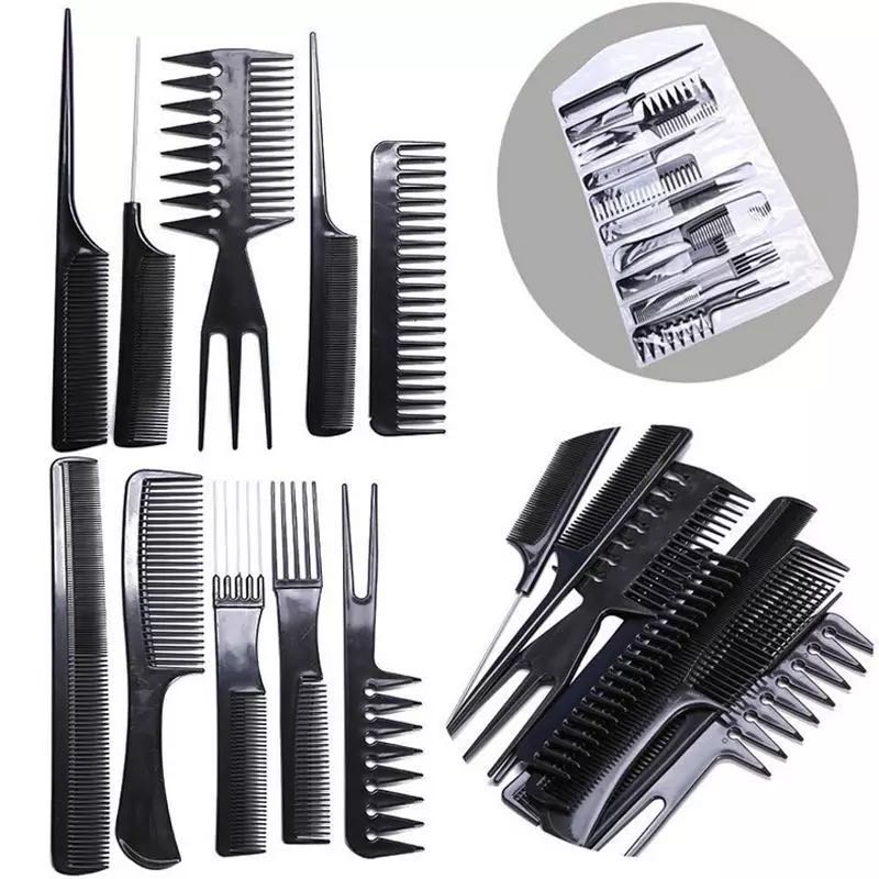 set de peinetas 10 pcs l indispensable a la hora de realizar los cortes de cabello o barba con la variedad de peinetas nos permite llevar a cabo un mejor trabajo. descripción material: plástico color: negro cantidad: 10 pcs